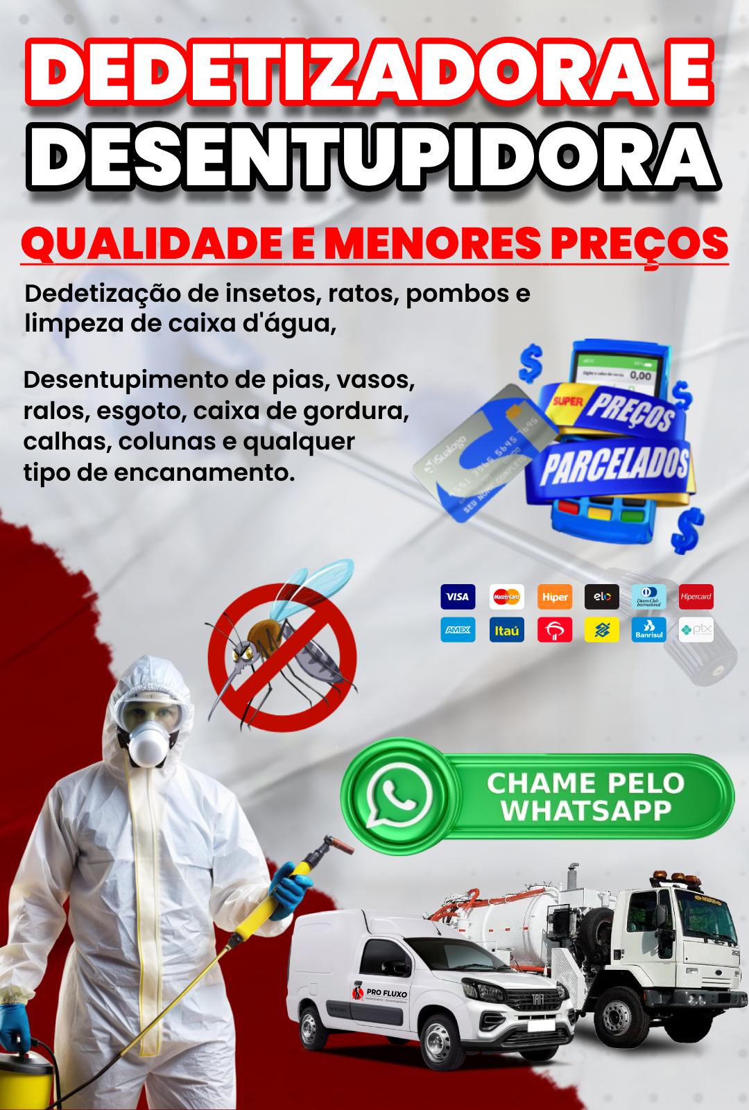 A Dedetizadora Pro Fluxo valoriza a transparência em cada etapa dos nossos serviços, oferecendo orçamentos claros e detalhados para garantir que você saiba exatamente o que esperar. Nosso compromisso com a satisfação do cliente é evidenciado na excelência do nosso trabalho e na nossa dedicação contínua para superar suas expectativas.